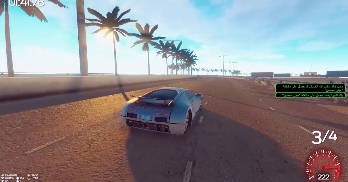 يتحرك اللاعب في عالم مفتوح واسع مليء بالتحدي والإثارة وذلك في أنحاء مدينة سعودية نموذجية مستخدما كل مالديه من وسائل المواصلات سواء كانت الاقدام أم السيارات.